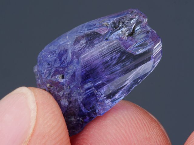 Exkluzivní malý a lesklý krystal tanzanitu z lokality Merelani v Tanzánii. Krystal je ukončený a velmi čistý. Kámen bez poškození s drobnými trhlinami uvnitř.