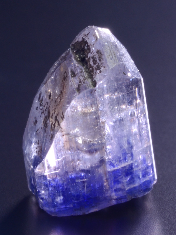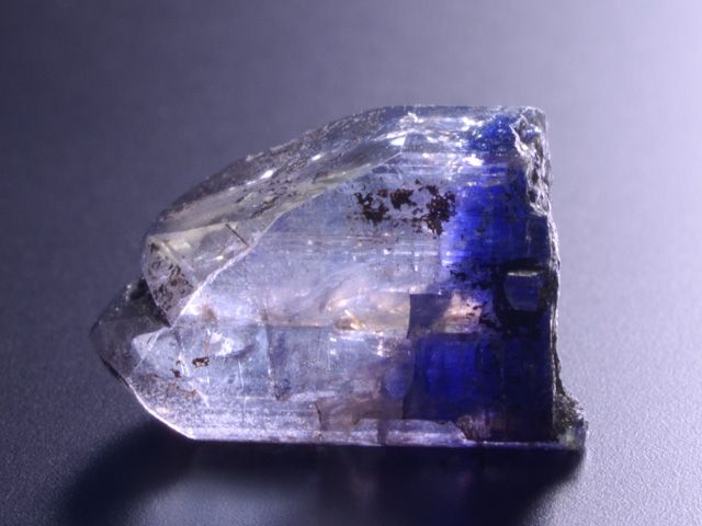 Lustrous terminated tanzanite crystal. The crystal is terminated, highly lustrous, internally transparent.