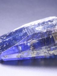 Velký lesklý krystal tanzanitu z lokality Merelani v Tanzánii. Krystal je ukončený a bez poškození. Krystaly této kvality jsou z této lokality ceněny i pro jejich barvoměnu - z čelní strany jsou krásně šedomodré, zatímco z boční strany jsou fialkově fialové. Krystal krásně vykazuje dichroismus a má hezký tvar!