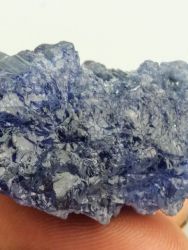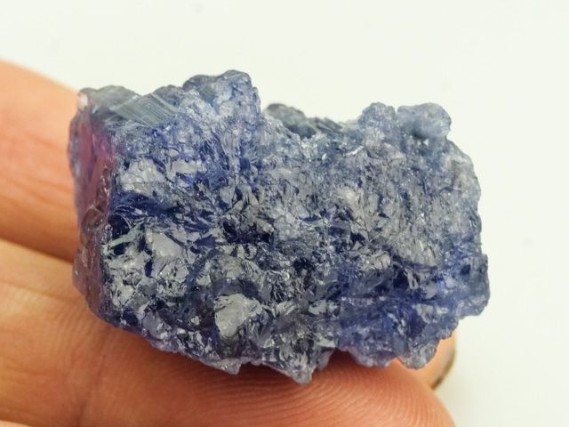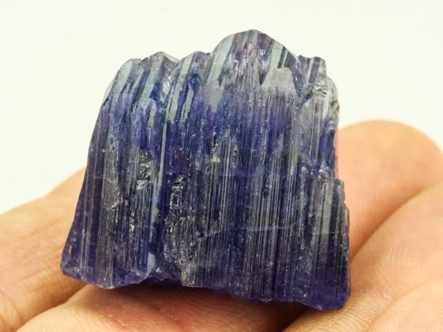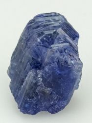 Lustrous terminated tanzanite crystal. The crystal is terminated, highly lustrous, internally transparent. Shows color change when viewed from front (blue-gray) and side (violet). No visible damage. Back side has 3 chips...