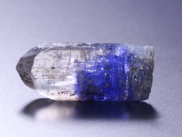 Lustrous terminated tanzanite crystal. The crystal is terminated, highly lustrous, internally transparent.