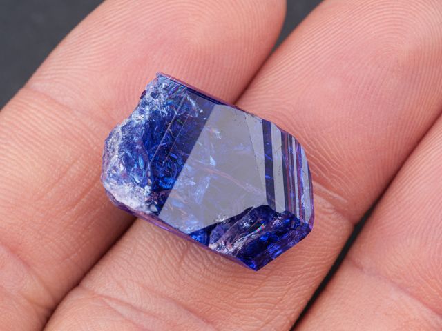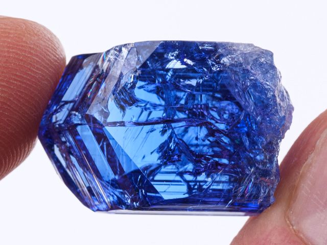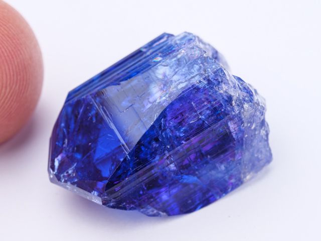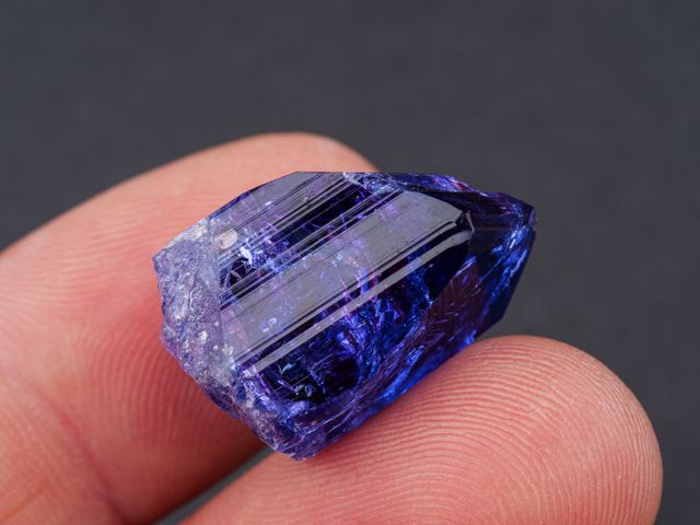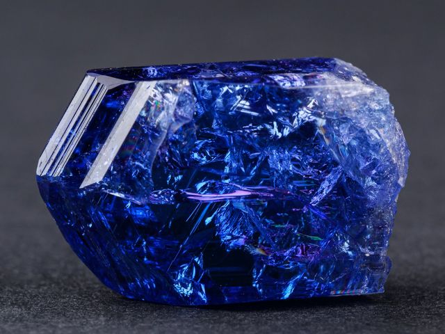 Lustrous terminated tanzanite crystal. The crystal is terminated, highly lustrous, internally transparent.