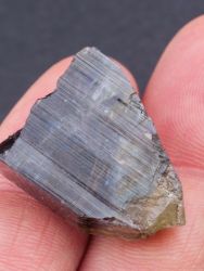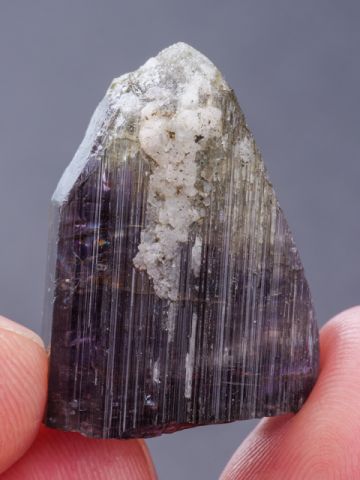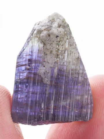Exkluzivní lesklý krystal tanzanitu z lokality Merelani v Tanzánii. Krystal je ukončený, zajímavě zonální (horní část je světle žlutá, ve spodní části krystalu je tmavě modrá partie). Barevné odstíny odvisí od způsobu a především zdroje nasvícení. V případě, že použijete polarizované světlo mění se barvy od modré přes fialovomodrou až po žlutou - podle směru zdroje světa.