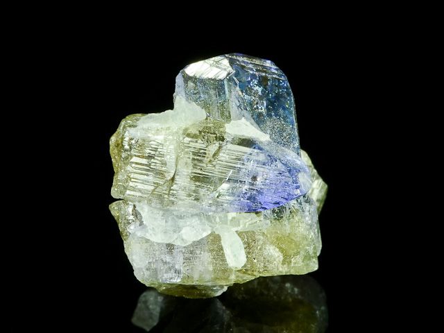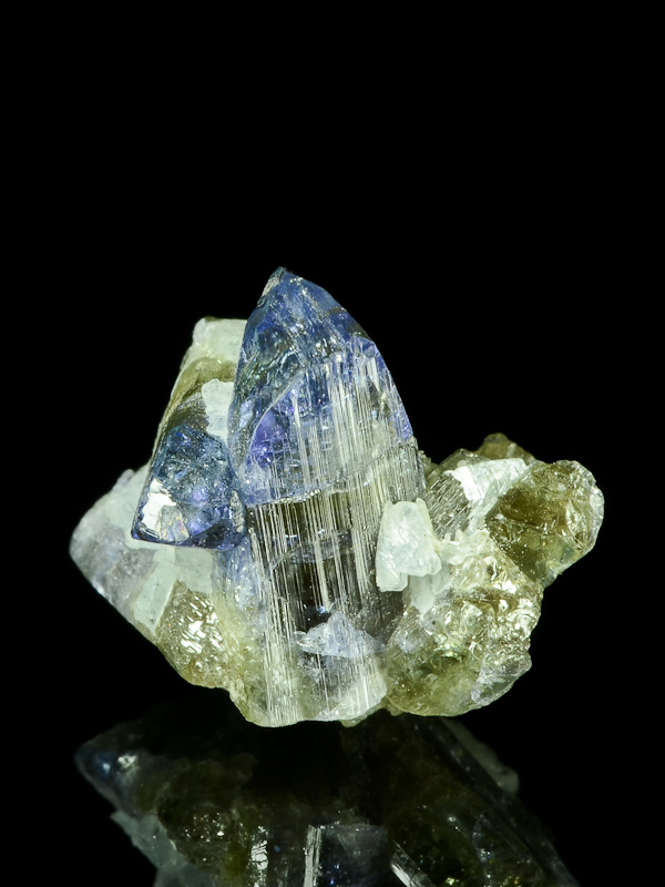 Exkluzivní lesklá srostlice krystalů tanzanitu z lokality Merelani v Tanzánii. Hlavní krystaly jsou ukončené a bez viditelného poškození. Drúzy této kvality jsou z této lokality ceněny nejen pro jejich barvoměnu - z čelní strany jsou krásně šedomodré, zatímco z boční strany jsou fialkově fialové, ale i pro jejich malou četnost.