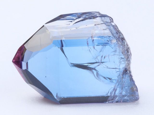Exkluzivní velký, lesklý a super čistý krystal tanzanitu z lokality Merelani v Tanzánii.Exkluzivní velký a lesklý krystal tanzanitu z lokality Merelani v Tanzánii. Krystal je ukončený a v rámci toho co lze vydobít ze země extrémně čistý. Krystaly této kvality jsou z této lokality cenněny i pro jejich barvoměnu - z čelní strany jsou krásně šedomodré, zatímco z boční strany jsou fialkově fialové. Jen těžce postřehnutelné setření hrany. Odhadovaná váha brousitelné suroviny je 6 g.