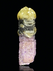 Lustrous crystals of tetrahedrite to 4.5 cm in size are on a matrix composed of galena and calcite crystal.Lustrous crystals of tetrahedrite to 4.5 cm in size are on a matrix composed of galena and calcite crystal. Tetrahedrite crystals are partially coated with Chalcopyrite. Overall a very good example for the species/locality.
