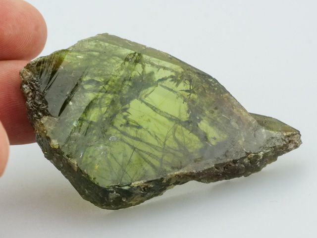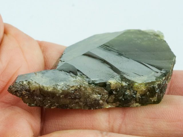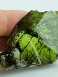 5,9 cm velký zelený krystal lesklého titanitu (sfén) z lokality Mondo. Jedná se o část krystalu s velice čistými partiemi. Zajímavý kámen pro doplnění sbírky. Zelená barva vyzní nejvíce při prosvícení/nasvícení.