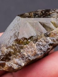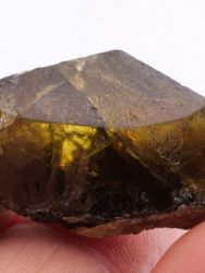 A part of single Sphene crystal from teh relatively new Mondo Mine. The locality is primarily mined for Quartz, but occassionally a good Sphene is found. This is as large and sharp and Sphene as I have seen from this locality so far. Good on front and back with gem zones.