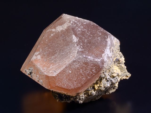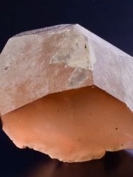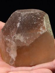An unusually well-formed topaz crystal. A unique, old-time topaz crystal from the Volodarsk-Volynskii. This striking, light sherry-colored crystal looks like a block of melting colored ice. Ding on the side.