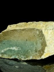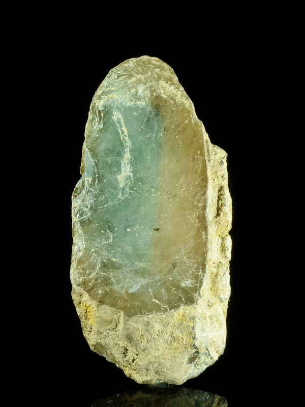 Část obrovského dvoubarevného krystalu topazu z jedinečné lokality Volyň (Ukrajina). Topaz má přechod z typické růžové barvy do světle modré. Ukrajinské topazy jsou touto dvoubarevností známy a jsou celosvětově uznávány jako jedny z nejkvalitnějších. Nález vzorku datován do období mezi rokem 1964 a 1965.