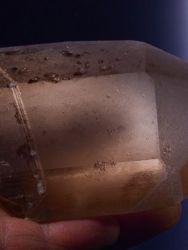 Ukončený topaz z jedinečné lokality Volyň (Ukrajina). Nepoškozený matný krystal ve skvělé kvalitě s typickým mléčným povlakem je ideálním a typickým vzorkem ukrajinského topazu. Jedno velmi drobné odštípnutí na bázi viz foto - neoznačujeme ani jako poškození. 100% objemu krystalu je v brousitelné top kvalitě.