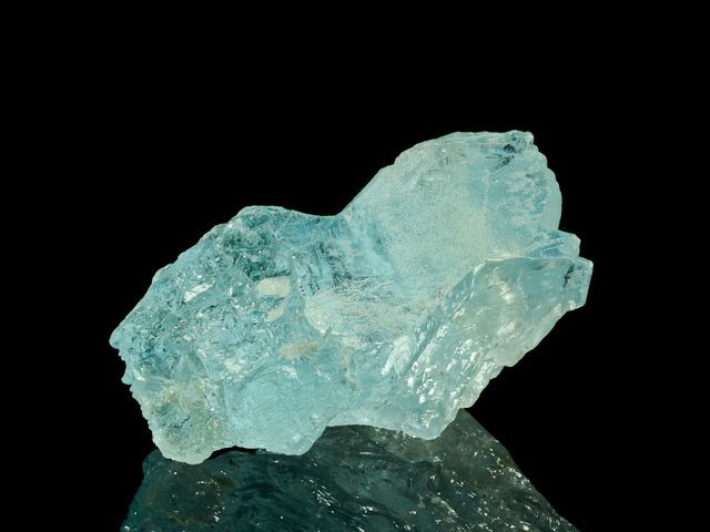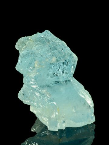 Netradiční vzorek modrého ukončeného krystalu topazu. Krystal topazu měří 5.1 cm, na danou lokalitu je relativně čistý a má přitažlivou přírodní světle modrou barvu. Krystal je částečně oboustranně ukončený (ukončení v dolní polovině krystalu je spíše regenerací původních násedových ploch), ale má dvě drobná místa poškozená/setřená. Poškození je zohledněno ve finální ceně. Krystal je částečně kostrovitě rostlý.
