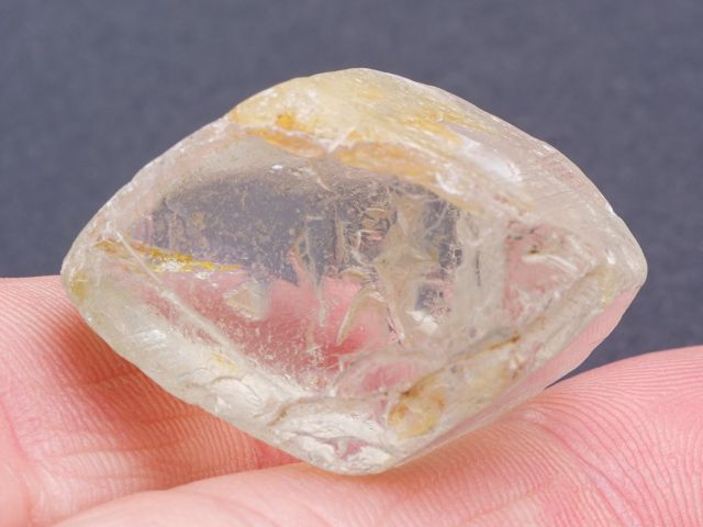 Pěkný vzorek ukončeného krystalu topazu světle namodralé barvy. Krystal topazu měří 28 mm, je velice čistý a má poškozené ukončení. Kámen má plochy plochy lesklé, plochy prizmatu matné. Středem prochází jemný modrý proužek. Kámen vhodný jednoznačně na výbrus.