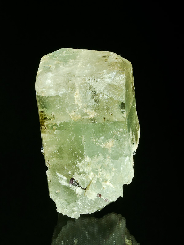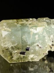 Here we have a nonclassic association of light blue colored topaz with beautiful contrasting elbaite crystals.Here we have a nonclassic association of light blue colored topaz with beautiful contrasting elbaite crystals. Tajikistan has long produced some of the finest topaz specimens in recent memory, and to find them with any kind of associations is remarkable. The Topaz crystal on this specimen is very sharp, partialy gemmy and glassy with a light blue color. Most crystal faces are clean and undamaged. The termination of the crystal is chipped.