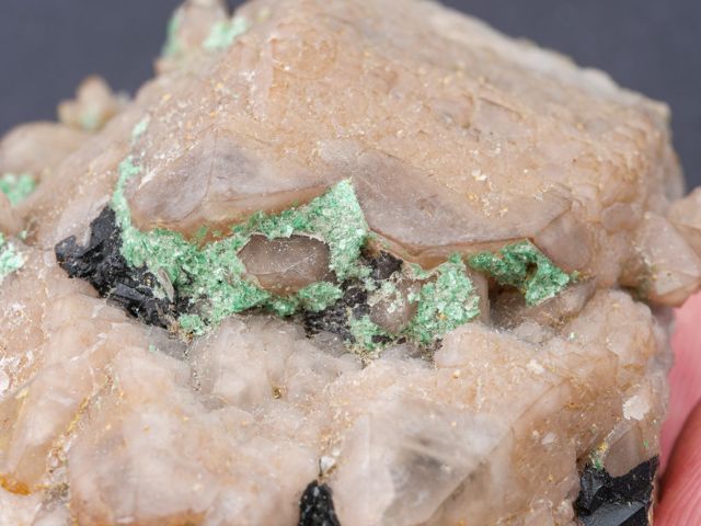 Krásná ukázka torbernitu na ukončeném lesklém křemenu z lokality Cínovec.Krásná ukázka torbernitu na ukončeném lesklém křemenu z lokality Cínovec. Shluk krystalů torbernitu kdy největší krystal měří až 1 mm. Nález cca r. 1965 - původní etiketa součástí položky.