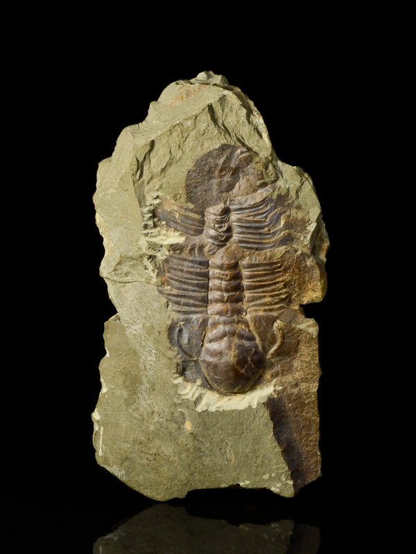 This wonderful 56 mm trilobite is Hydrocephalus minor from Jince.These wonderfully preserved Cambrian Trilobites are 100 % authentic and are professionally prepared by the most adept artists to preseve its natural beauty and are in perfect display condition. One clean repair through mid thorax. This fossil trilobite, Hydrocephalus minor is from the Jince Formation of central Czech republic and is Cambrian time period. This one measures 56 mm and the matrix is 92 x 48 mm.