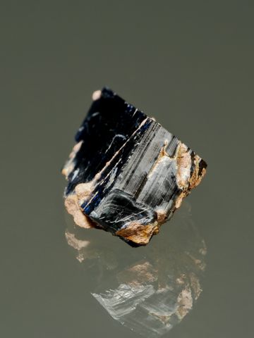 A sharp, wonderfully trimmed Bolivian vivianite specimen, featuring a crystal of classic form and bottle-green color.A sharp, wonderfully trimmed Bolivian vivianite specimen, featuring a crystal of classic form and bottle-green color. This mine has produced what are clearly some of the finest quality Vivianite specimens ever seen.