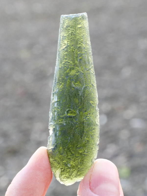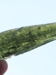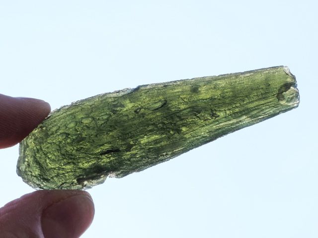 21,2 g Real rare natural tektite - moldavite. Absolutely beautiful and large example of a Nesměň moldavite. Amongst the most beautiful of tektites, the beauty being derived from heavy etching in the ground and destruction of the original surface texture.