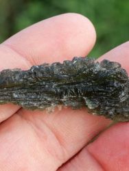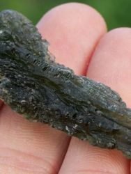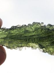 Krásný vltavín kapkovitého tvaru z lokality Besednice Stoh. Vltavín je tvarově ucelený s výraznou zelenou barvu a typickou skvělou skulptací. Tvarem i kvalitou je kámen předurčen do kvalitní sbírky. Kámen bez poškození - na nejtenčí části kamene jsou dvě drobná setření, která vznikla nejspíše ještě v zemi.