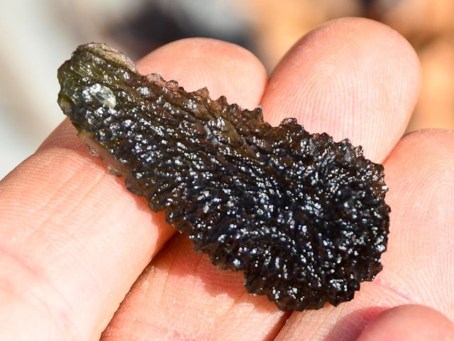 7.1 g real rare natural tektite - moldavite. This is a nice moldavite in the drop shape. This stone is dark-coloured as you can see in the picture. A magical natural moldavite from Czech Republic with a fascinating elongated shape. This specimen has been hand selected for high quality.
