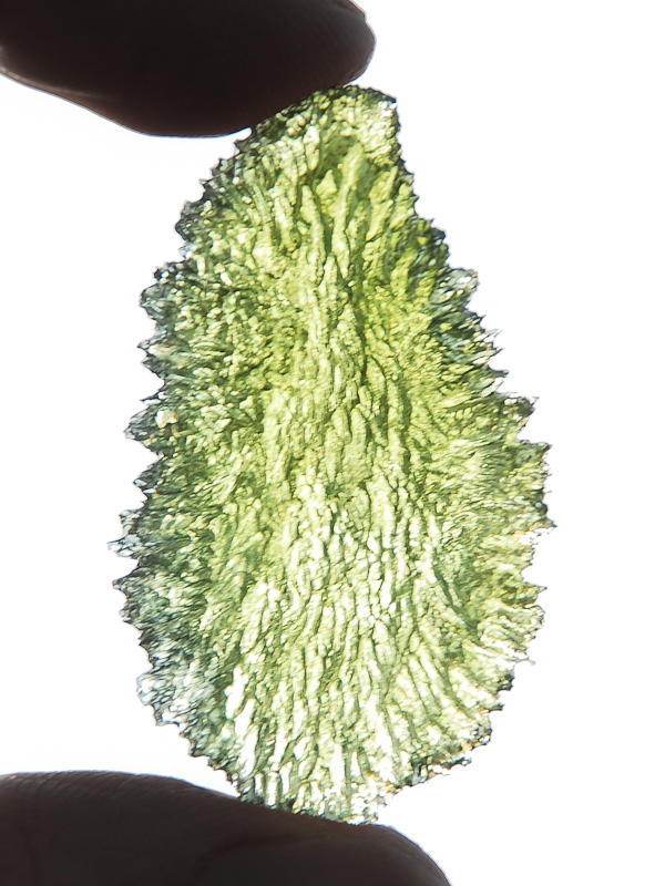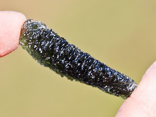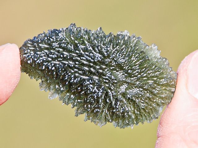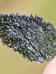 Krásný vltavín téměř pravidelného tvaru z lokality Malý Chlum. Vltavín má výraznou zelenou barvu a velmi hrubou typicky lesklou skulptaci. V husté lesklé skulptaci nenajdete poškození. Tvarem i TOP kvalitou je kámen předurčen do kvalitní sbírky.