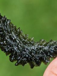Vltavín výrazně rozježené skulptace a nadprůměrné váhy na lokalitu. Kámen je ve vynikajícím stavu s krásnými dlouhými jehlicemi. V husté skulptaci naleznete pouze 3 jehlice stržené způsobem těžby (max 4,5x3,0 mm). Navíc je vltavín zajímavý tím, že se tvarově jedná o tzv. půlměsíc (tak typický pro danou lokalitu). Kameny nad 5 gramů obdobné kvality jsou zcela raritní a vysoce ceněny nejen v zahraničí, ale především u nás v ČR. Vzhledem k situaci dané lokality se jedná jednoznačně o investiční vzorek.