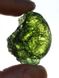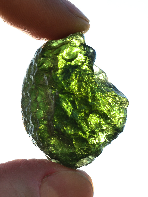 Green tektite moldavite from Vrabce! Amazing oval shape, gem green - no damage moldavite. Simply perfect medium sized gem in excellent proportions and typical „Vrabce“ fancy and unusual surface sculputring.