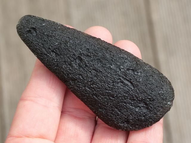 48.3 g real rare natural tektite - moldavite. This is a nice moldavite in the drop shape. This stone is dark-coloured as you can see in the picture. A magical natural moldavite from Czech Republic with a fascinating elongated shape. This specimen has been hand selected for high quality.