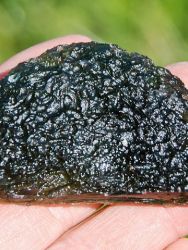 34.8 g real rare natural tektite - moldavite. This is a nice moldavite in the shape of a letter D. This moldavite is very dark as you can see in the picture. This specimen has been hand selected for high quality.
