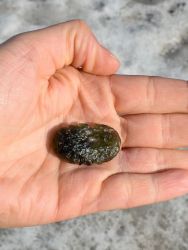 Krásný sytě zelený vltavín kapkovitého tvaru z lokality Vrábče - Pískovna. Vltavín má lesklý povrch s důlkovitou skulptací kdy po vnějších okrajích je několik ostrých jehlic. Krásný sběratelský kus v dobrém stavu. Velmi starý sběr.