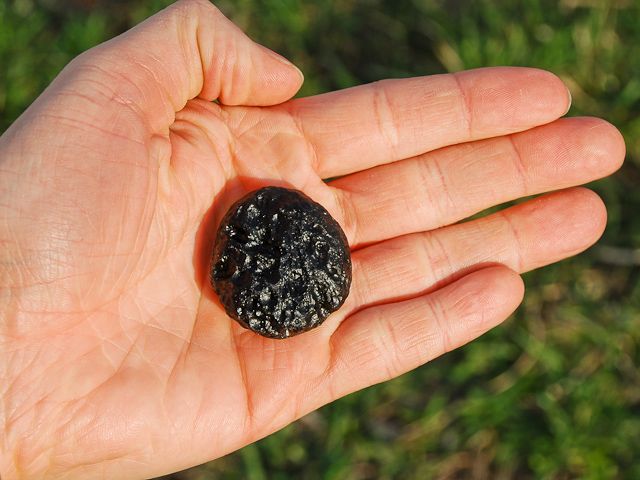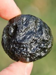 Krásný sytě zelený vltavín diskovitého tvaru z lokality Vrábče (Pískovna). Vltavín má lesklý, absolutně nepoškozený povrch a skvělý tvar tzv. celotvar. Krásný sběratelský kus - obdobných kamenů není až tak mnoho.
