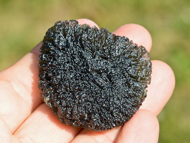 36.4 g real rare natural tektite - moldavite. This is a nice moldavite in the amazing shape. This stone is dark-coloured as you can see in the picture. A magical natural moldavite from Czech Republic with a fascinating shape. This specimen has been hand selected for high quality.