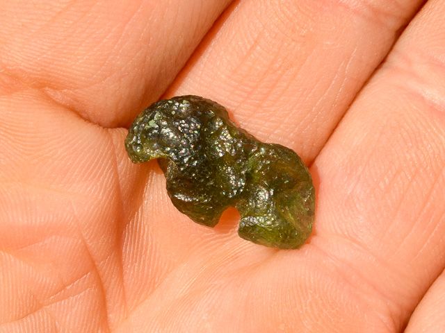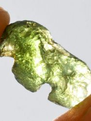 Moravský vltavín netypicky světle zelené barvy z lokality Slavětice. Kámen je lesklý, s velmi hrubou skulptací. Výskyt moravských vltavínů je vzácnější, než jak tomu je na jihu Čech. Moravské vltavíny jsou navíc mírně odlišné jak svojí skulptací tak barvou.