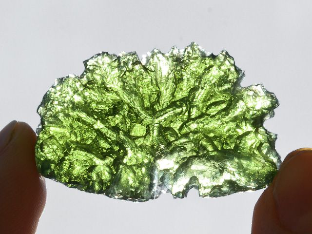 Vltavín s úžasnou extra hrubou skulptací z lokality Malý Chlum. Vltavín má tvar půldisku, výrazně zelenou barvu a až netypickou výraznou skulptaci srovnatelnou s besednickou. Kámen z málo časté lokality vhodný do sbírky či šperku. Vltavín je bez poškození a je velmi lesklý.