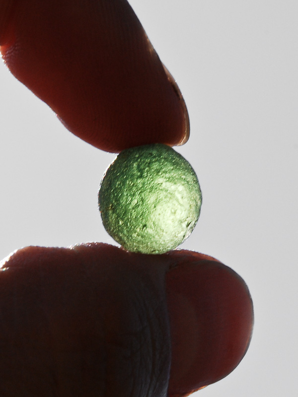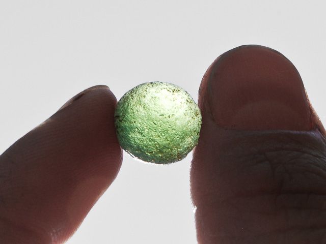 Sbírkový vltavínu diskovitého tvaru a ve vynikajícím stavu. Kámen je zajímavý nejen příjemnou výrazně zelenou barvou ale také matným povrchem a nevýraznou skulptací. Nepoškozený kámen v základním okrouhlém tvaru. Tímto kamenem neudělá chybu nejen sběratel ale také kreativní šperkař.