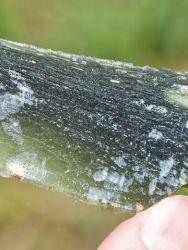 Krásný vltavín plochého tvaru z lokality Bartochov. Vltavín má výrazně tmavě zelenou barvu a tzv. sametový povrch. I na lokalitách jako je právě Bartochov mohou být zajímavé kameny jako je tento - vhodný do kvalitní sbírky jako zástupce lokality. Kámen s netradiční skulptací má opravdu jen minimální poškození viditelných na fotografiích - o velikosti max 1,5x1,0 mm. Jedná se o kvalitativně "nadstandardní" kámen z lokality. Ve skutečnosti vypadá kámen lépe než na fotkách.