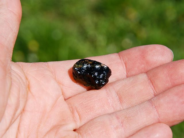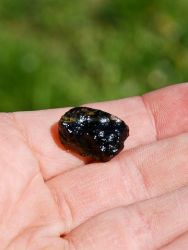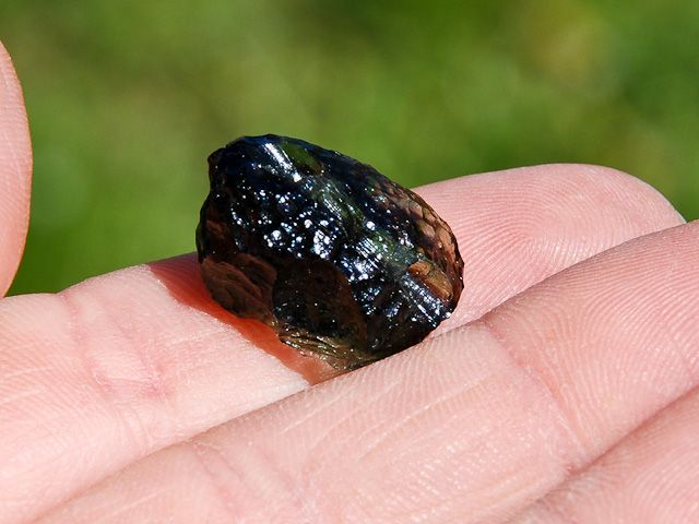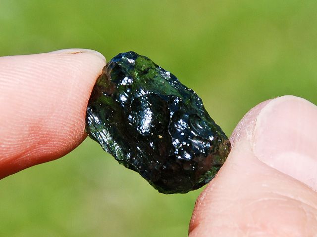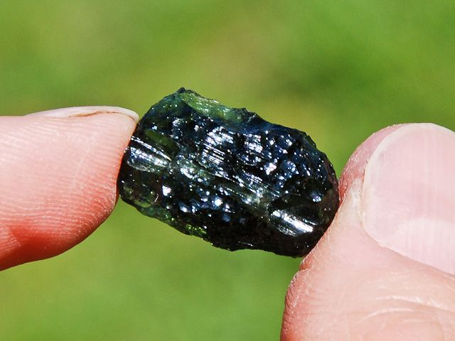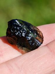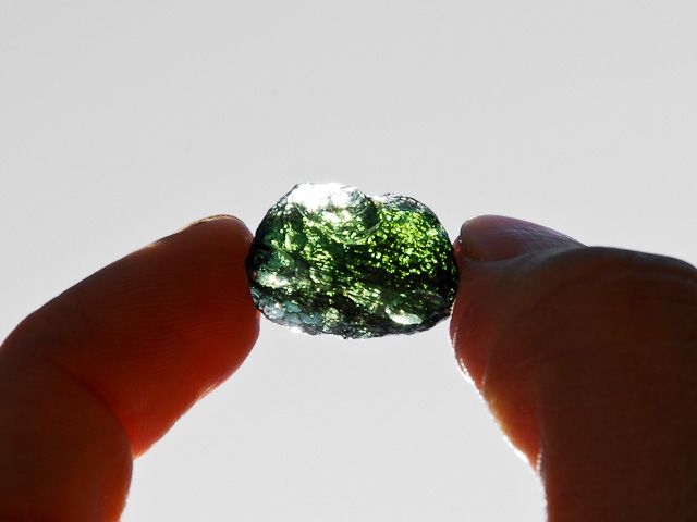 Krásný lakově lesklý vltavín zajímavého tvaru o váze 3,1 g. Vltavín má extrémně výraznou zelenou barvu, skvělý lesk (tzv. lakovka) a výborný tvar. Kámen vhodný do sbírky i šperku.