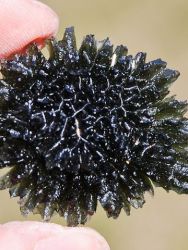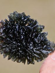 Vltavín výrazně rozježené skulptace a nadprůměrné váhy na lokalitu - 19,2 g!Vltavín výrazně rozježené skulptace a nadprůměrné váhy na lokalitu. Kámen je v dobrém stavu a téměř nepoškozený - jen miniaturní zanedbatelná setření několika jehlic (nezměřitelné). Navíc je vltavín zajímavý tím, že se jedná o celotvar - spodní část kapky. Kameny nad 15 gramů obdobné kvality jsou zcela raritní a vysoce ceněny nejen v zahraničí, ale především u nás v ČR. Vzhledem k situaci dané lokality se jedná jednoznačně o investiční vzorek.