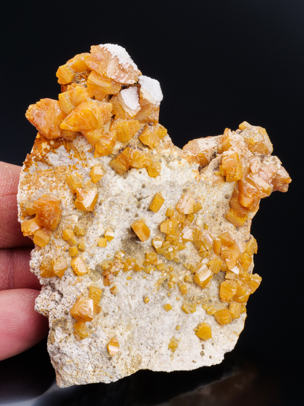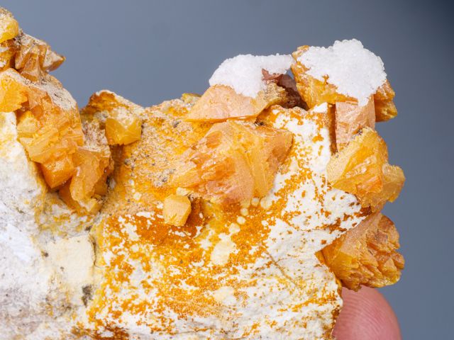 Oranžové, skelně lesklé, tabulkovité krystaly wulfenitu, které dosahují velikosti až 14 mm pokrývají podložku převážně z pohledové strany. Zajímavý cenově dostupný vzorek.Oranžové, skelně lesklé, tabulkovité krystaly wulfenitu, které dosahují velikosti až 14 mm pokrývají podložku převážně z pohledové strany. Zajímavý cenově dostupný vzorek.