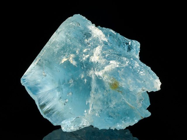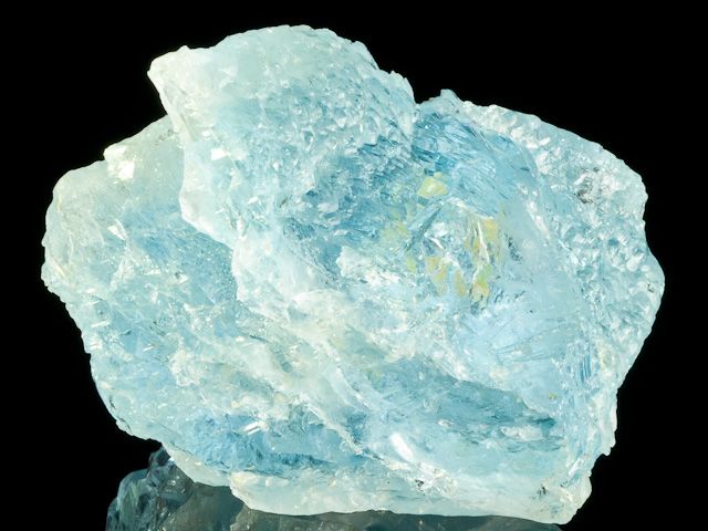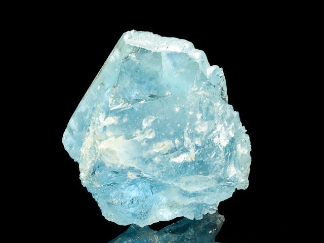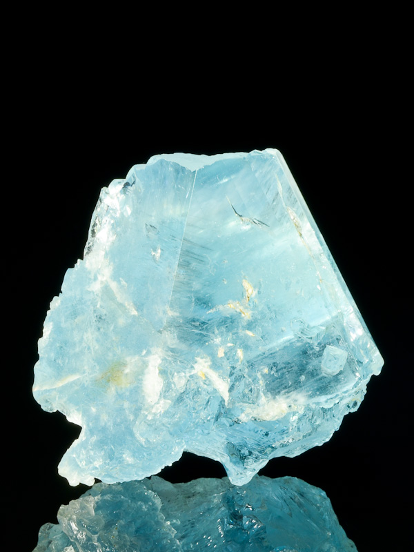 A striking, frosted and etched, gemmy, ice-blue topaz crystal. This crystal is from the recent, small find at world famous Virgem da Lapa, Brazil. The sharp, icicle-like points crowning the crystal are very distinctive. No visible damage.