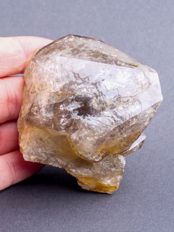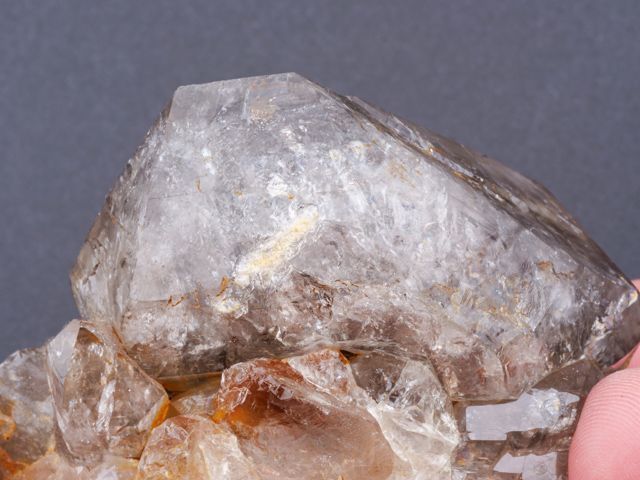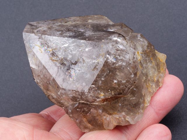 Brilliant lustrous mostly transparent terminated smoky quartz crystal. This is very good for the locality. No damage.