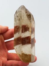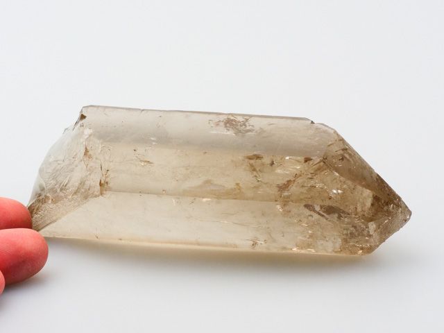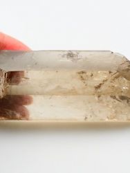 Velký lesklý krystal záhnědy z Brazílie. Krystal záhnědy má mírně kontaktní ukončení kde je drobný otluk (4x2,5 mm) jinak v dobrém stavu. Vzhledem k celkové kvalitě kamene se však jedná o bezvýznamné poškození.
