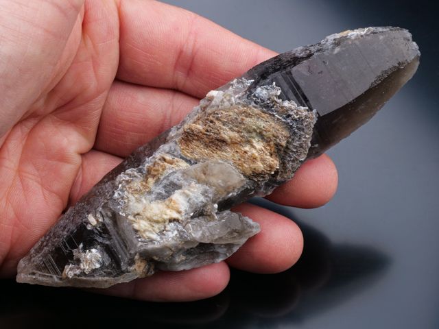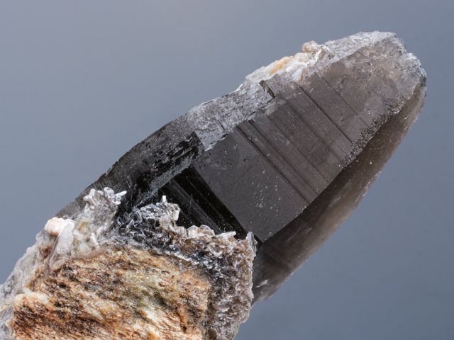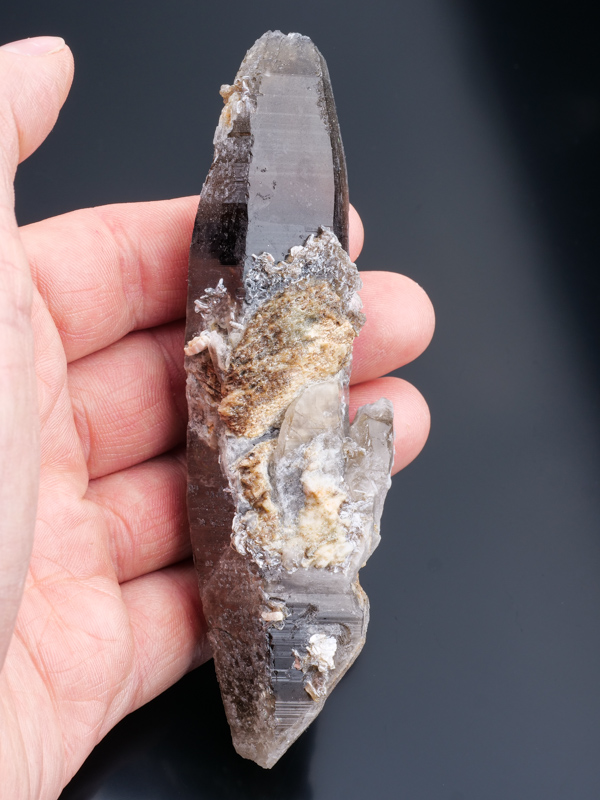 Here we have a lustrous smoky quartz specimen from a old find in Bobrůvka.Here we have a lustrous smoky quartz specimen from a old find in Bobrůvka. This specimen features a very sharp, lustrous, well formed, defined smoky color scepter crystal.