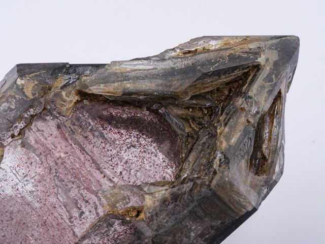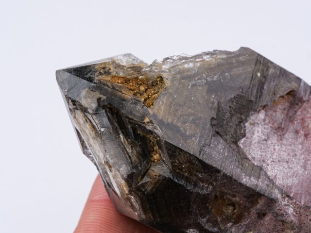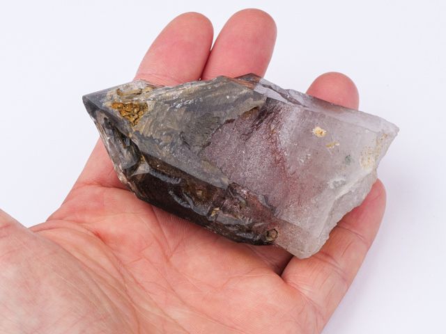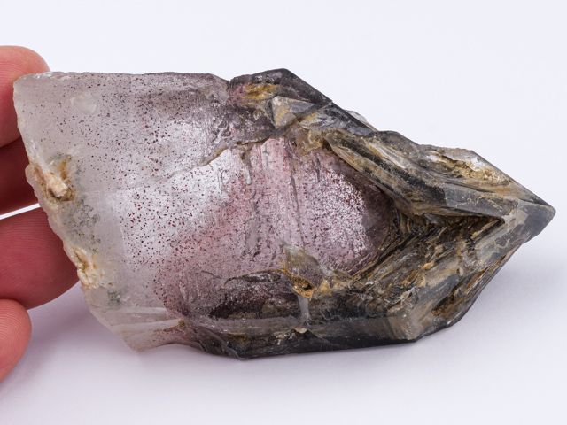 Krystal záhnědy s pěknou strukturou. Vzorek má příjemnou šedohnědou barvu a opravdu vysoký lesk. Zajímavý kámen jen s malým poškozením hran oken (kupodivu to není na první pohled viditelné). Poškození zahrnuto do finální ceny. Zajímavé tečkovité inkluze.