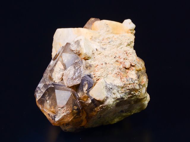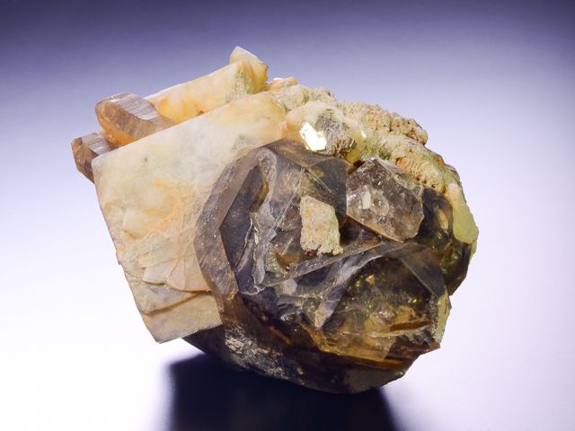 Ukázkový vzorek drúzy krystalů kouřově zbarveného křemene - záhnědy a světle žlutavých krystalů albitu.Ukázkový vzorek drúzy krystalů kouřově zbarveného křemene - záhnědy a světle žlutavých krystalů albitu. Krystaly záhnědy jsou lesklé, tmavě zbarvené a čisté. Na vzorku je i několik drobných slíd. Pěkný sbírkový vzorek. Kostka hlavního albitu měří 3,6x3,6x3,6 cm. Vzorek pochází ze staré sbírky - rok nálezu 1996. Původní etiketa součástí položky.
