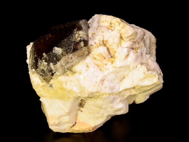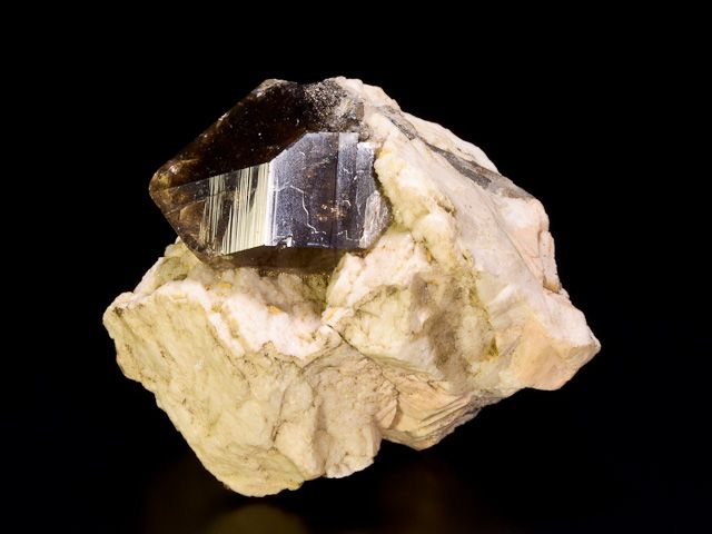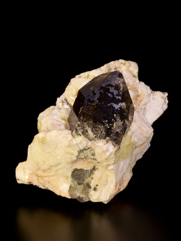 Velmi estetická ukázka krystalů záhnědy na albitové podložce z polské lokality Strzegom.Velmi estetická ukázka krystalů záhnědy na albitové podložce z polské lokality Strzegom. Velmi pěkná ukázka pegmatitového původu tvořená ukončeným krystalem záhnědy o velikosti 3,6 cm. Sběr cca. r. 1988.
