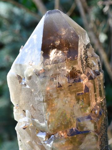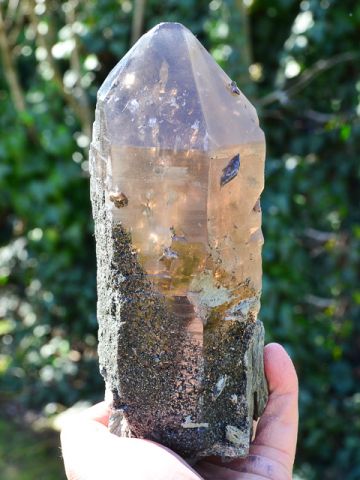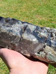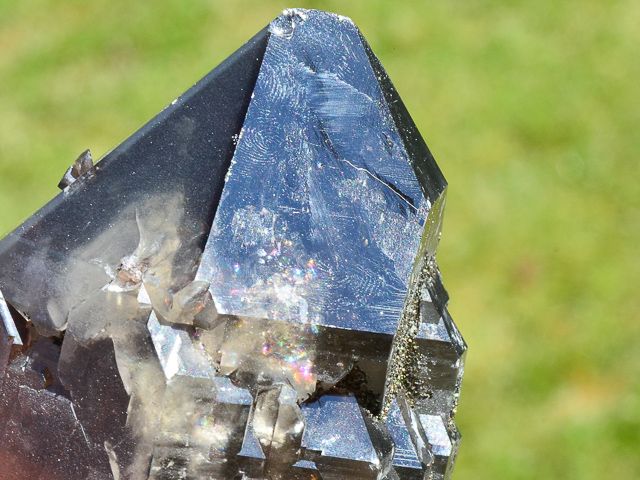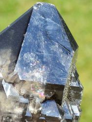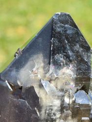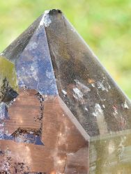 Krystal záhnědy s krystaly axinitu ze světoznámé lokality Pujva. Na krystalu křemene je několik krystalů axinitu o velikosti do 1,5 cm. Velký kámen vhodný jednoznačně do vitríny. Na krystalu je cca 6 oťuků včetně dvou na ukončení - zahrnuto do výsledné ceny.