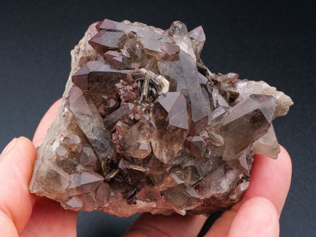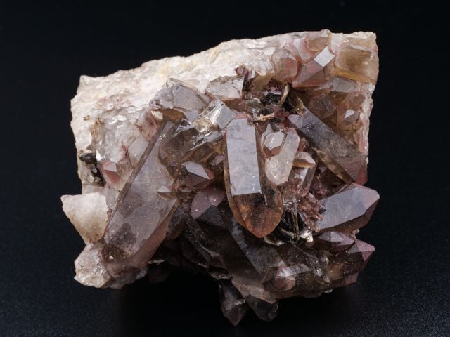 Pěkný vzorek záhněd na podložce s cinvalditem z fenomenální lokality Cínovec.Pěkný vzorek záhněd na podložce s cinvalditem z fenomenální lokality Cínovec. Největší krystal záhnědy je 3,8 cm velký. Záhnědy jsou velmi čisté. Sběr cca 1965 - původní etiketa součástí položky.