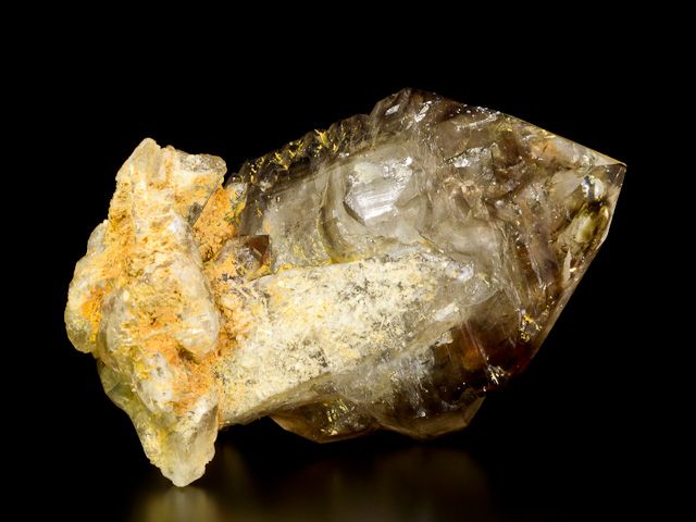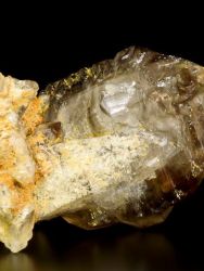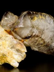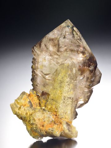 Here we have a lustrous scepter smoky quartz matrix specimen from a old find in Bobrůvka.Here we have a lustrous scepter smoky quartz matrix specimen from a old find in Bobrůvka. This specimen features a very sharp, lustrous, well formed, defined smoky color scepter crystal. No damage. Collected ca. 1940.