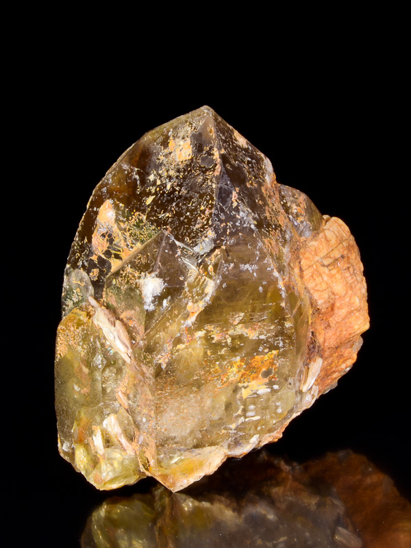 This piece features a big smoky quartz on a plate of light feldspar crystals and mica crystals.A precious combination piece for the locale! This piece features a big smoky quartz on a plate of light feldspar crystals and mica crystals. You can see the smoky is particularly well placed and 3-dimensional.